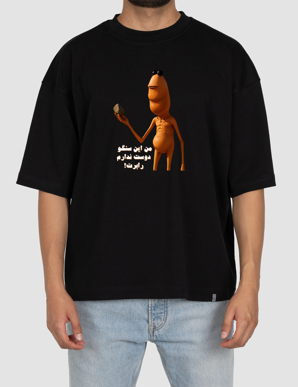 تیشرت باکسی مارکوس و سنگ از برند هیوان با چاپ خاص و ترند این روزها طراحی شده است. این طرح الهام‌گرفته از یکی از ویدیوهای محبوب اینترنتی است که روی آن صداگذاری‌های طنز انجام می‌شود.