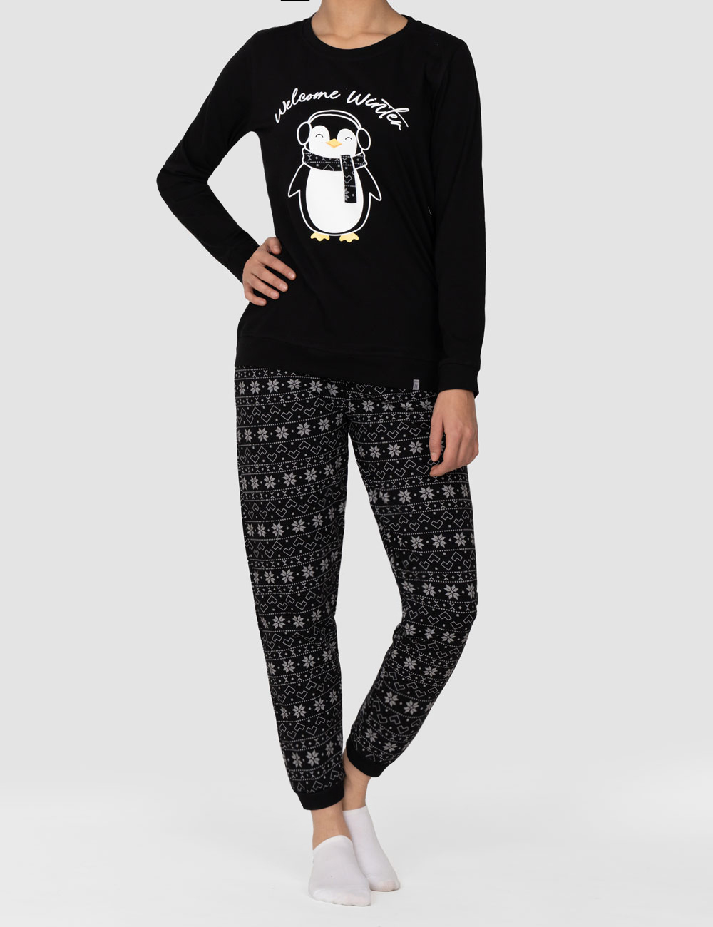 بهترین ترکیب برای این شلوار، بلوز پنگوئن و برف یا هر بلوز ساده مشکی یا سفید است. برای یک ست زمستانی کامل، جورابهای فانتزی یا اسلیپرهای گرم هم میتونه در کنار این شلوار جذاب باشه. مناسب برای خانه، دورهمی راحت و استایلهای cozy زمستانی.